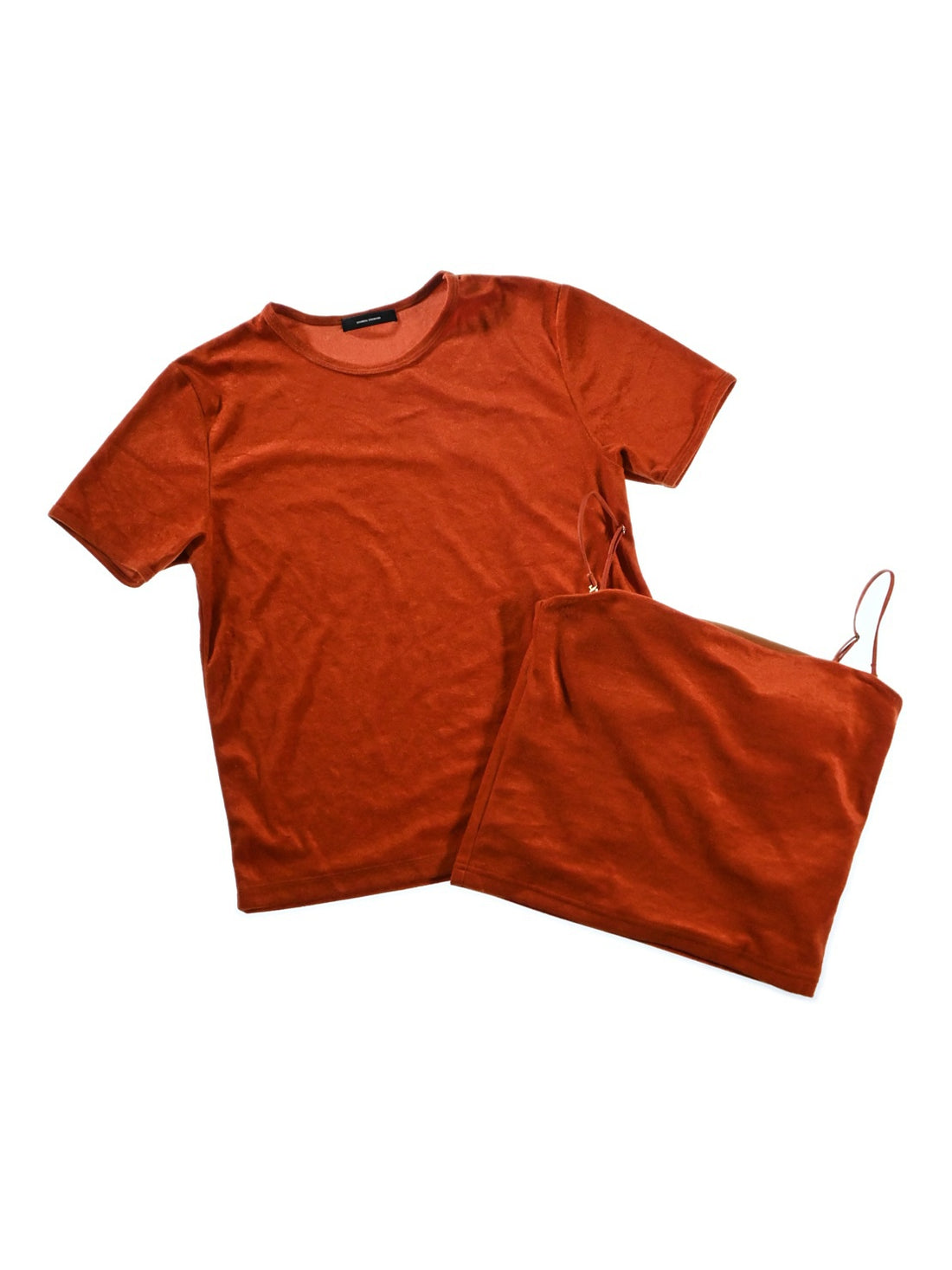 This set includes a velour T and a bare top made of the same material! The bare top comes with cups so you can wear it alone in midsummer٩٩_(๑>◡<๑)۶