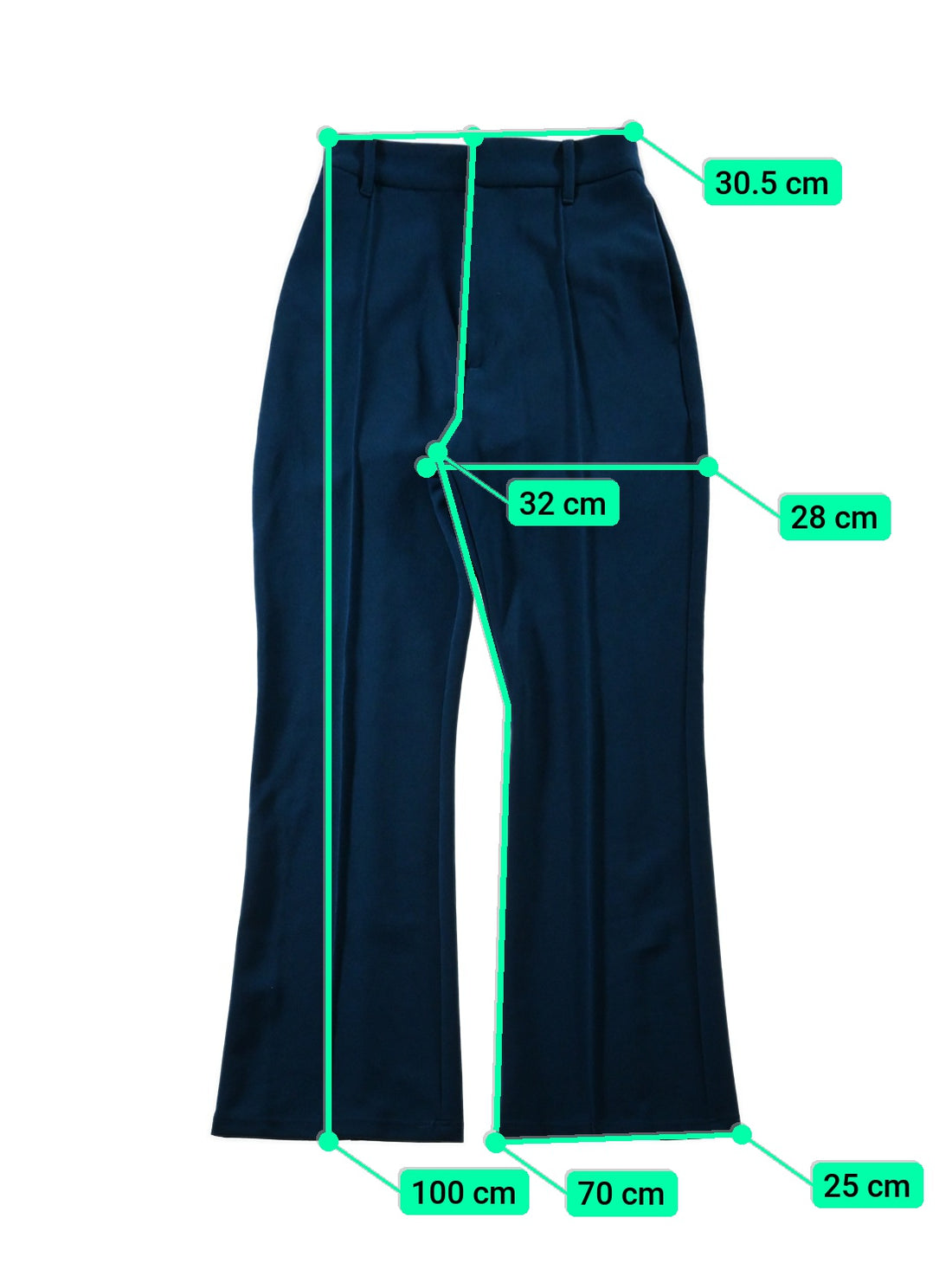 เอวแบน: ประมาณ 30.5 ซม. / ความยาวทั้งหมด: ประมาณ 100 ซม. / เพิ่มขึ้น: ประมาณ. 32 ซม. / Inseam: ประมาณ 70 ซม. / ต้นขากว้าง: ประมาณ 28 ซม. / ความกว้างของชายเสื้อ: ประมาณ 25 ซม.