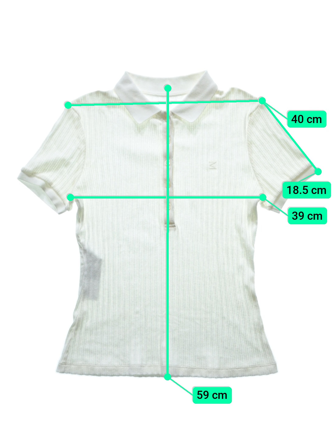 着丈:約59cm / 肩幅:約40cm / 身幅:約39cm / 袖丈:約18.5cm